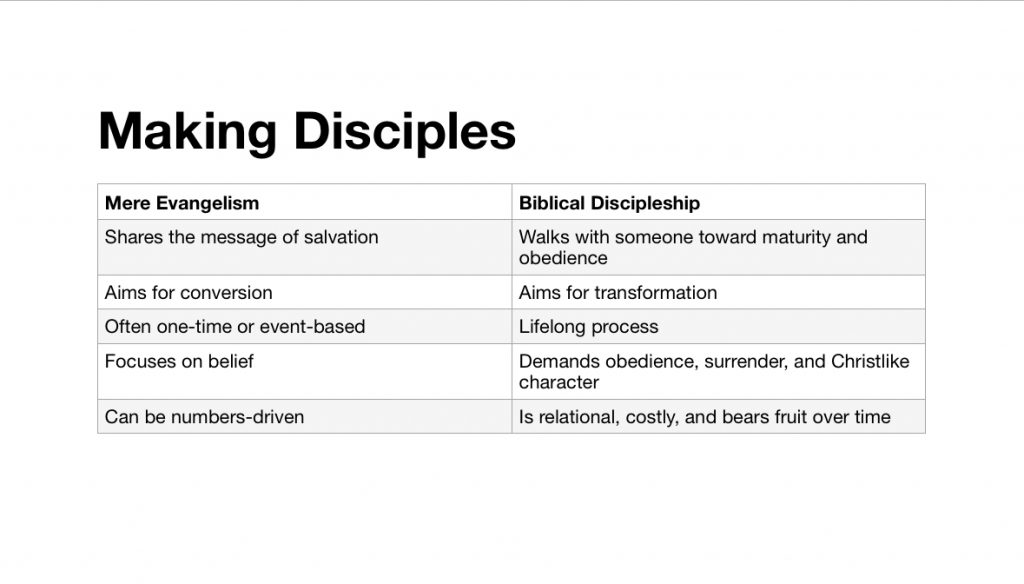 We are commissioned to go and make disciples, and not merely sharing the gospel. Sharing the gospel is only the starting point of true disciple making.